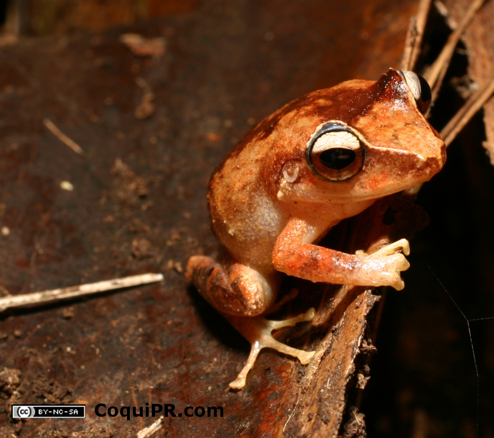 Este coquí solamente vive en las montañas. Al igual que las demás especies, las hembras son más grandes que los machos, 35 mm (1.4") y 30 mm (1.2") respectivamente.